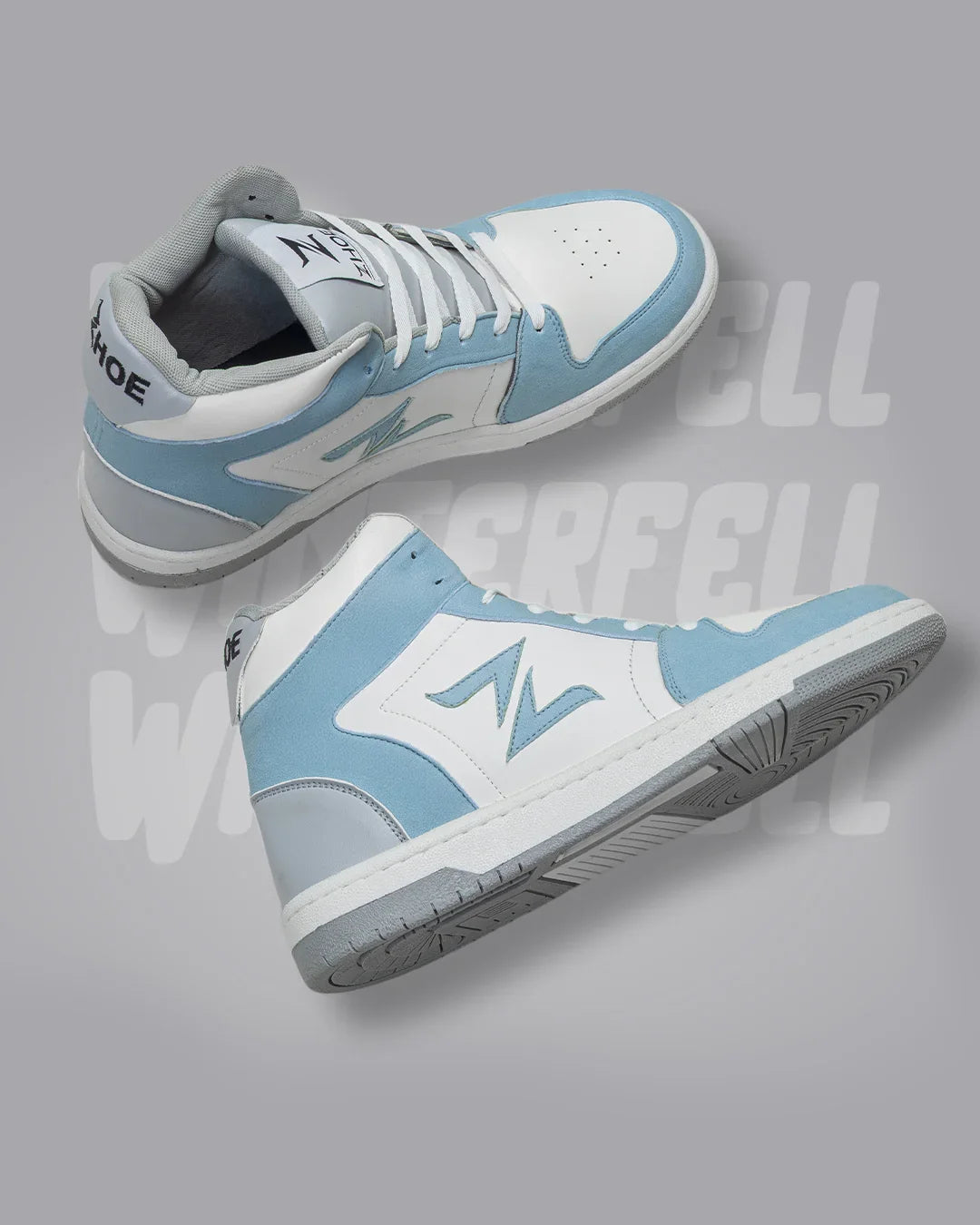 Built with the strength of the North, the Zhoe Winterfell brings quiet power and cool style. The glacier-blue, snow-white, and stone-grey colours are inspired by winter and House Stark from Game of Thrones. These high-tops are made for those who stay strong, stay loyal, and never give up.